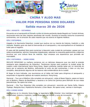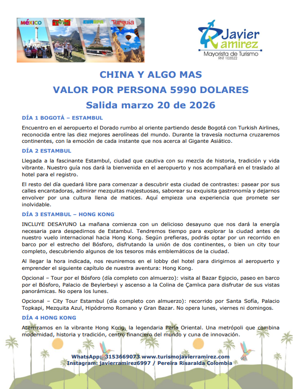 En Turismo Javier Ramírez tenemos alianzas estratégicas con operadores turísticos de Europa, Medio Oriente, México y Sudamérica para ofrecerte lo mejor en cuanto a calidad y servicio.