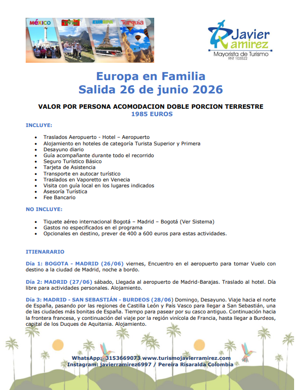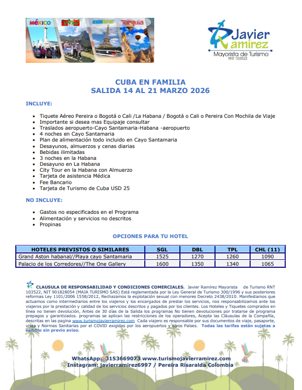 En Turismo Javier Ramírez nos enfocamos en crear experiencias únicas para cada uno de nuestros clientes.